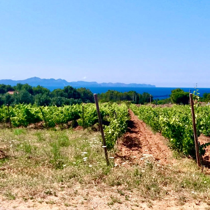 Late June 2020 I finally got to visit the bodega and vineyard Conde de Suyrot, nestled between the Massís d’Artà and the Mediterranean Sea. My visit, initially planned on March 17th – the very same day that the Spanish Government declared a nationwide lockdown because of the Covid-19 pandemic- was inevitably postponed. But very much worth the wait. When I arrived at the there I passed by a small, lush vegetable patch before I was greeted by a small flock of muscovy ducks, chickens, a new puppy, and the salty breeze of the Mediterranean Sea. The Bodega’s terrace overlooking the grape vines and the seascape is set up for events and visits arranged by appointment. You should defiantly go if you can. Just a friendly warning though; once you are there, you are in paradise and you will not want to leave.